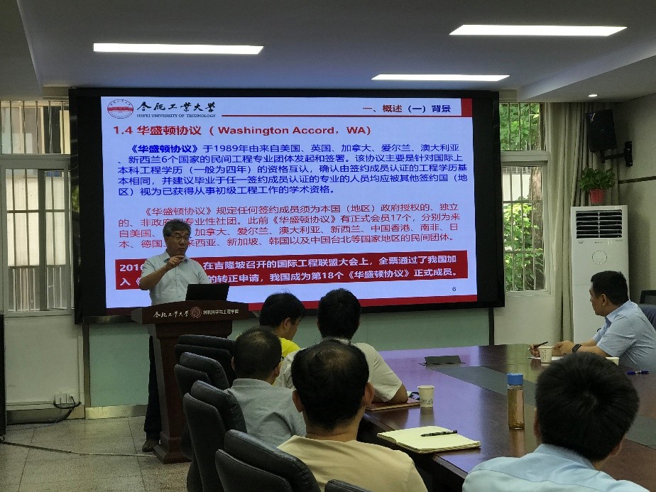 行政服务中心210会议室作了题为《工程教育专业认证标准理解与实践体会》的主题报告。学院教学副院长、各专业(中心)主任和副主任、各支部书记、骨干教师及相关工作人员参加了报告会,会议由周如龙副院长主持。