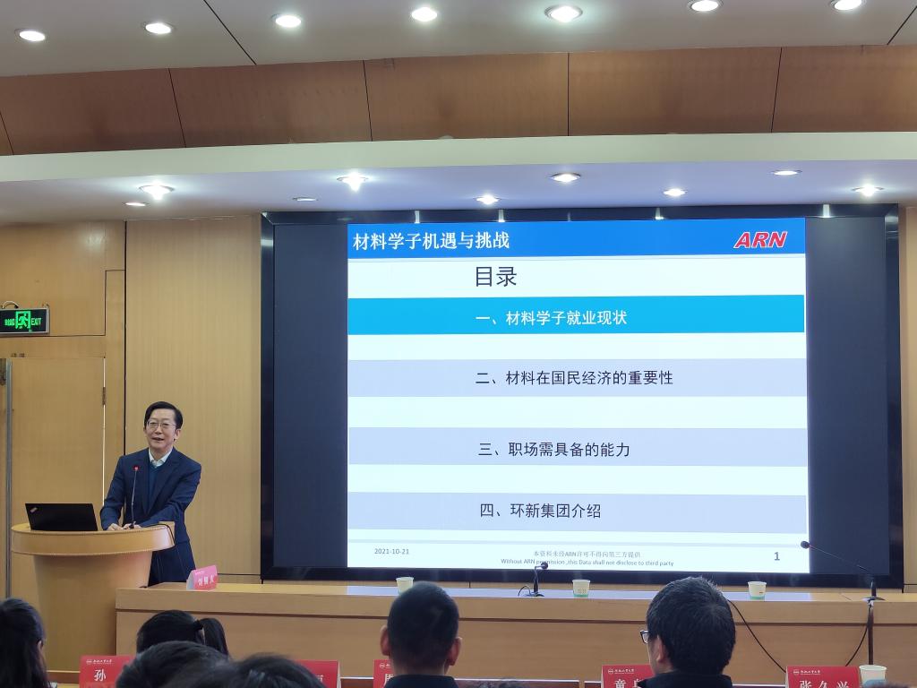 颁奖仪式结束后,刘铜庆以“材料学子机遇与挑战”为题,用翔实的数据和丰富的图表阐述了材料学子就业现状,深刻剖析了当前材料行业及材料学子当前存在的问题和面临的机遇与挑战,并强调了材料在国民经济中的重要地位。他还分享了自身职业生涯发展的心得体会,表达了对91偷拍