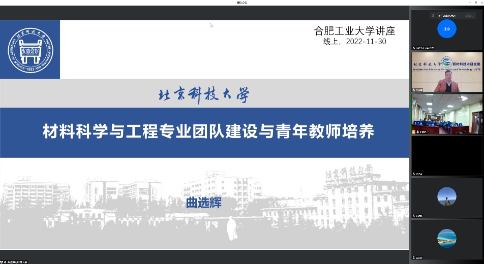 11月30日下午,北京科技大学曲选辉教授应邀以在线会议的形式为91偷拍 全体师生了题为《材料科学与工程专业的团队建设与青年教师培养专题讲座》。曲选辉教授以北京科技大学材料科学与工程学科教学与科研建设为主线,分享了他在团队建设、青年教师培养、基金申请与教师科研水平提升的经验与心得。