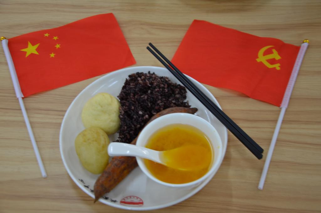 在“吃红军饭,话红军情”环节中,饮食服务中心为每位同学定制了搭配“红米饭、窝窝头、南瓜汤、煮土豆、煮红薯”的红军饭套餐。同学依次排队取餐,细细品尝。通过现场展牌宣传、师生交流,同学们更加深刻体会到红军长征时期的艰难困苦,感叹红军的伟大,并表示要坚定走好新时代的长征路。