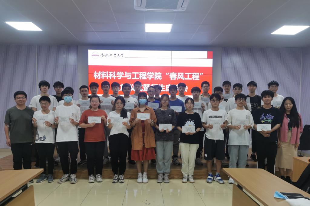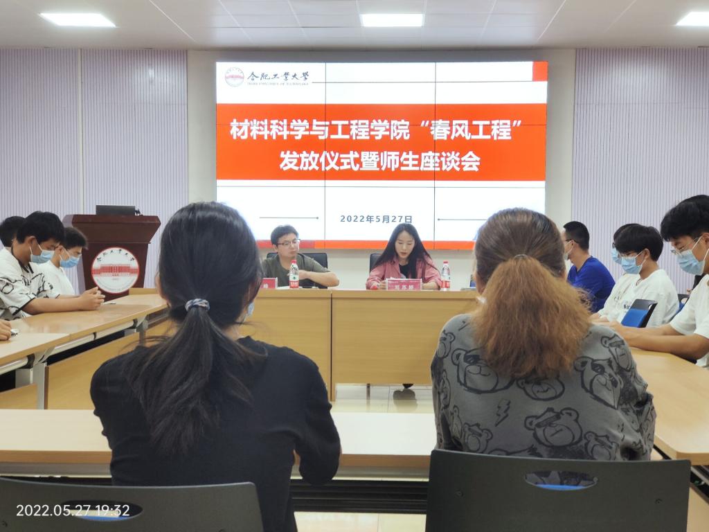 在翡翠湖校区综合楼一楼多功能厅举办“春风工程”发放仪式暨师生座谈会,学院相关辅导员、受助学生代表参加本次活动。