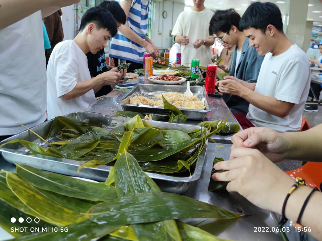 在屯溪路校区德园食堂组织同学们开展了“弘扬传统文化,体验劳动乐趣”为主题的端午包粽子活动,材料物理19-1班学生,学院相关老师参与本次活动。