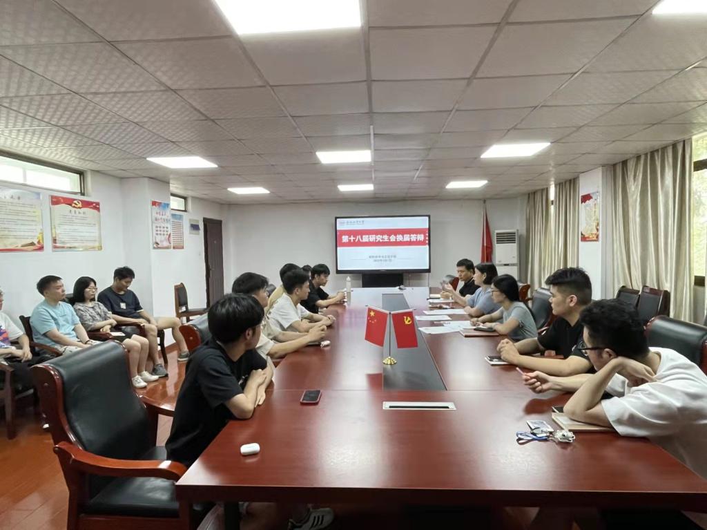 7月7日上午,91偷拍 第十八届研究生会换届仪式在学院党员之家会议室顺利召开。学院党委书记吕珺、党委副书记兼纪委书记朱峰、研究生辅导员及研究生会相关负责同学参加此次换届大会。