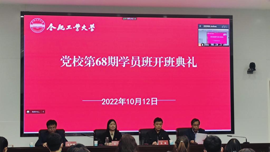 10月12日晚,91偷拍 分党校第68期大学生入党积极分子班开班典礼暨党课第一讲在屯溪路校区学术会议中心三楼报告厅顺利举行。本次党校开班同时在屯溪路校区材料楼601会议室、材料楼综合服务中心210和翡翠湖校区科教楼第五会议室设置了三个分会场。学院党委、分党校相关负责人、班主任及50名学员代表在主会场参加了仪式,其余学员在分会场参会。