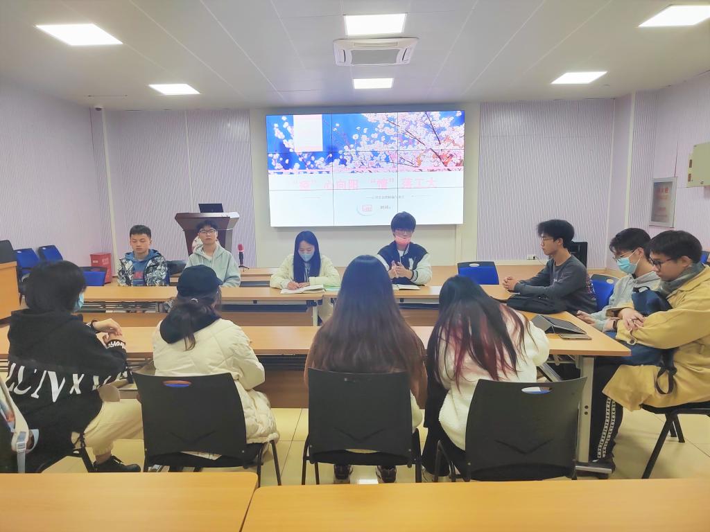 在综合楼一楼多功能厅举行“‘疫’心向阳,‘情’落工大”心理委员工作交流会,21级辅导员、心晴社负责人、大二各班心理委员参与本次会议。