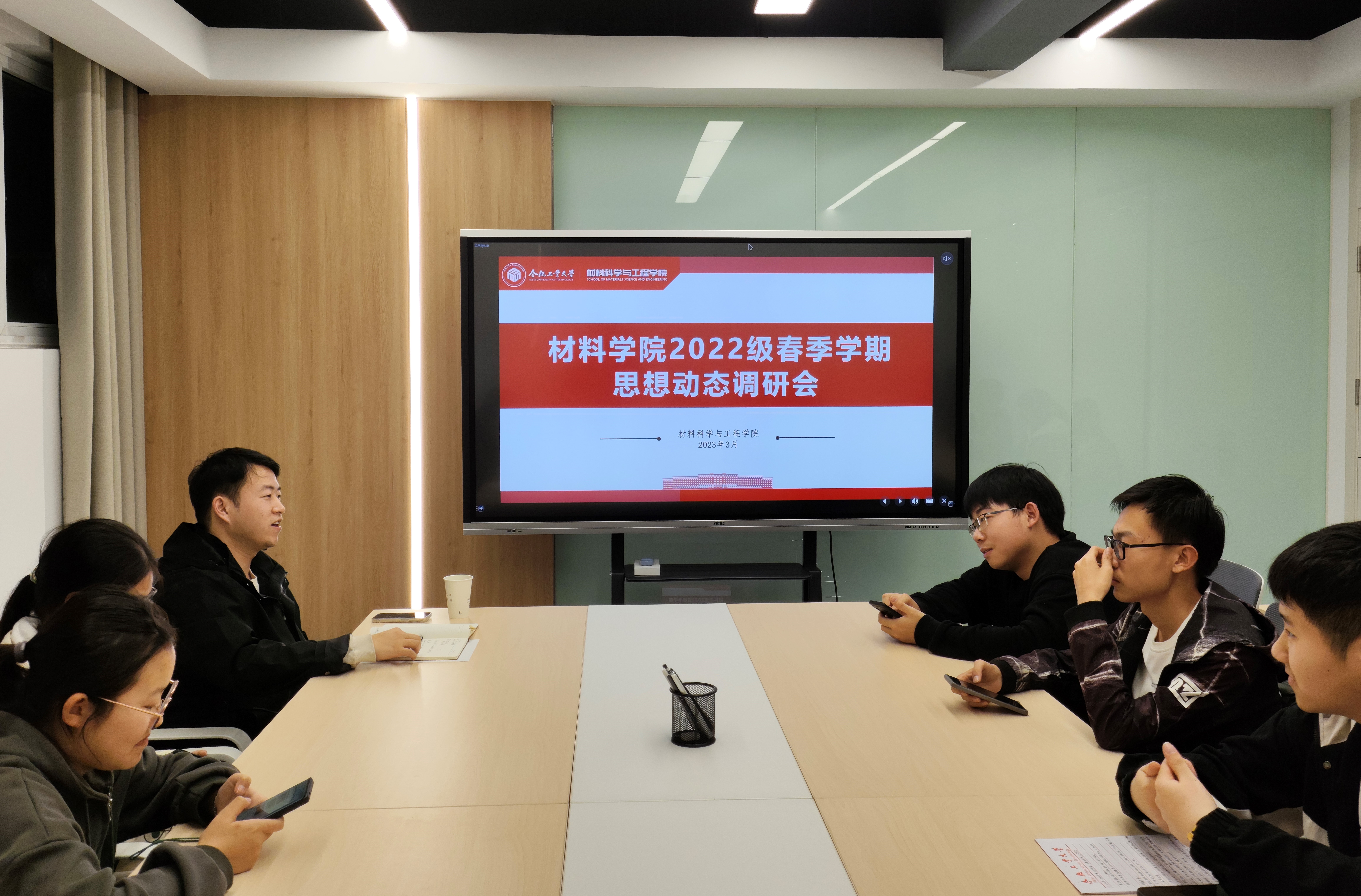 在2022级本科生中开展了春季学期学生思想动态调研会,学院2022级辅导员、各班思政委员及班级代表参加了此次调研会。