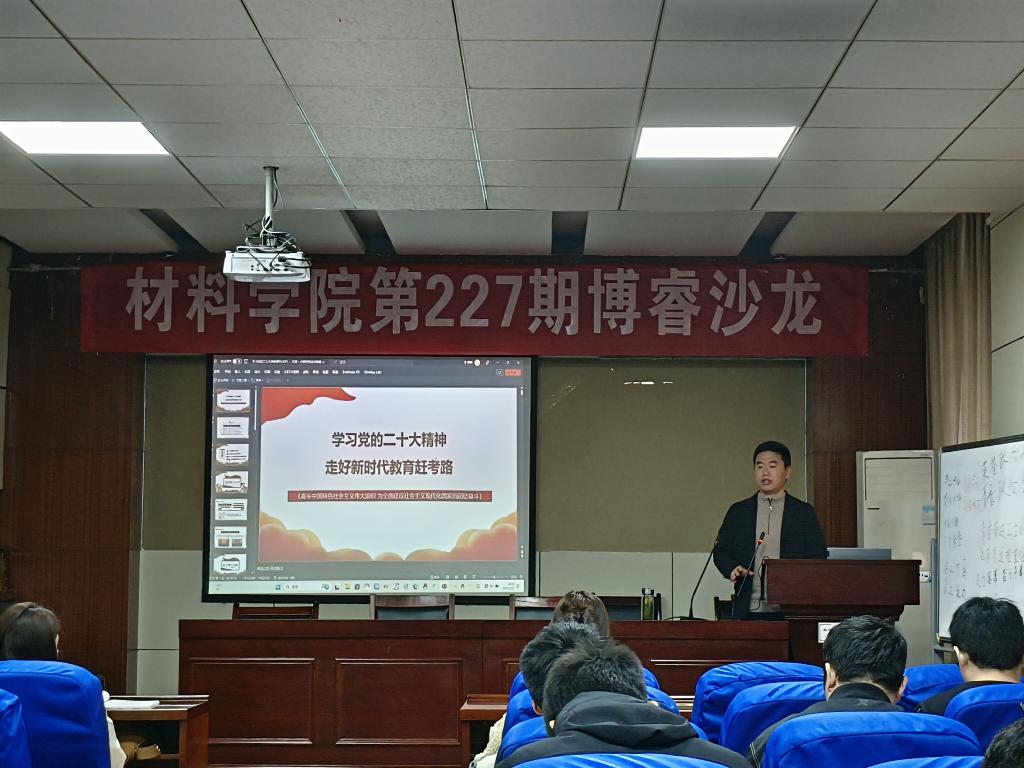 材料物理与化学及复合材料研究生党支部在材料楼601开展“领悟二十大精髓,传承科学家精神”主题党课学习活动。支部全体党员参加本次活动,材料物理与新能源材料党支部书记项宏发教授担任党课主讲人。
