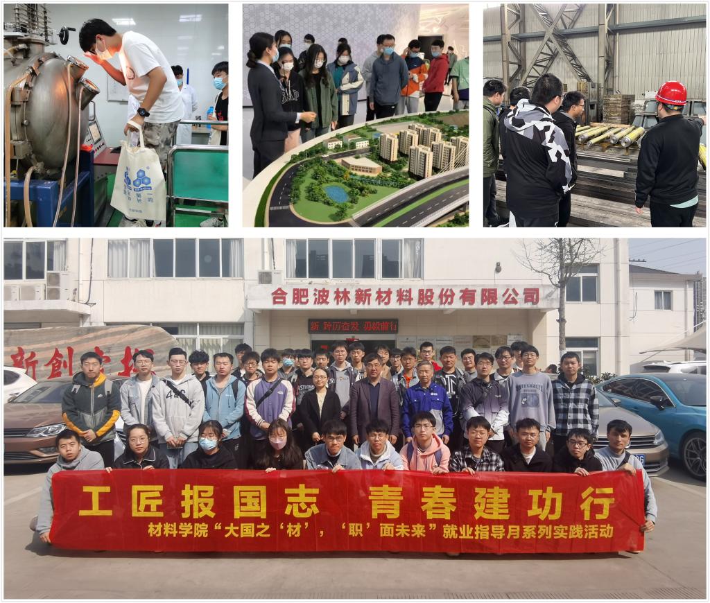 组织师生赴通用特种材料有限公司、合肥海德数控液压设备有限公司、合肥科晶材料技术有限公司等18家材料类相关企业开展“大国之‘材’,‘职’面未来”就业指导月“名企行”系列活动。学院2020级材料成型及控制工程、金属材料工程、无机非金属材料工程和粉体材料科学与工程等4个专业248名本科生分批参与本次活动。
