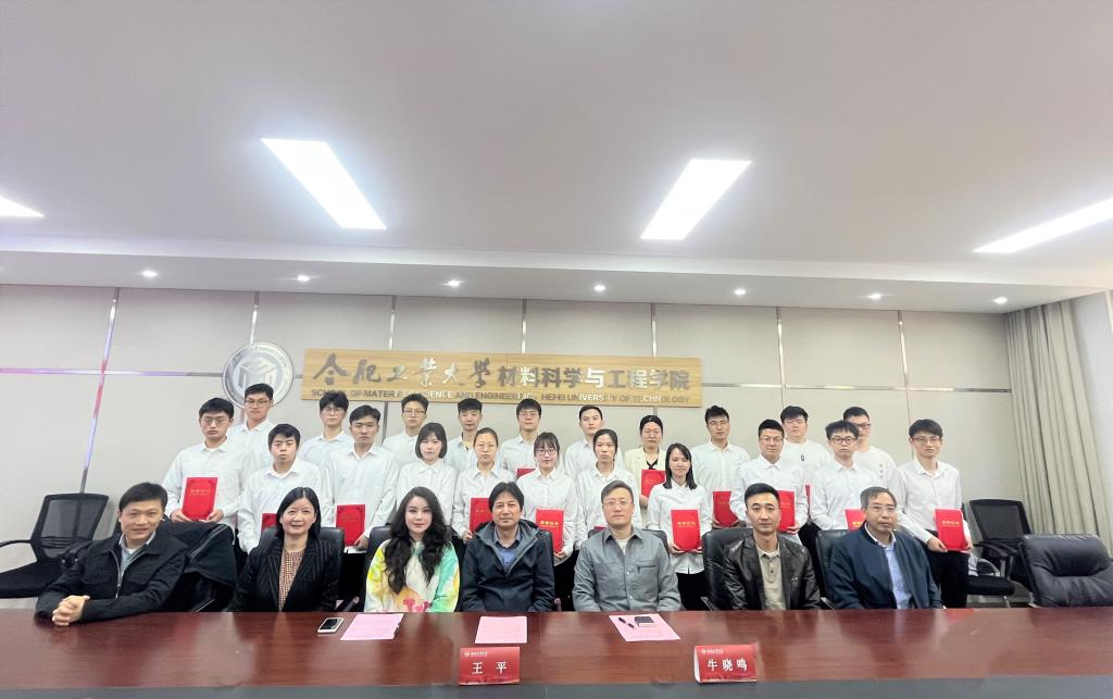 “合肥科德电力表面助学金”获奖者的决定》。与会嘉宾为获得本届助学金的10位研究生和20位本科生颁发了荣誉证书。无机非金属材料工程21级1班闫维同学代表获奖同学发言,表示将不会辜负企业与学院的殷切关心与期望,不断进步,砥砺前行。