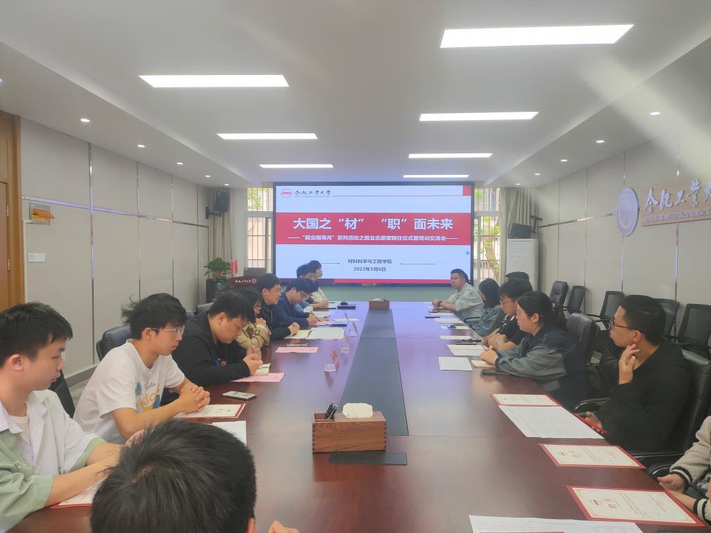 5月6日上午,91偷拍 在屯溪路校区材料楼综合服务中心210举办2024届毕业生就业志愿者聘任仪式暨培训交流会。学院相关负责人、2024届毕业班辅导员和全体就业志愿者参会。