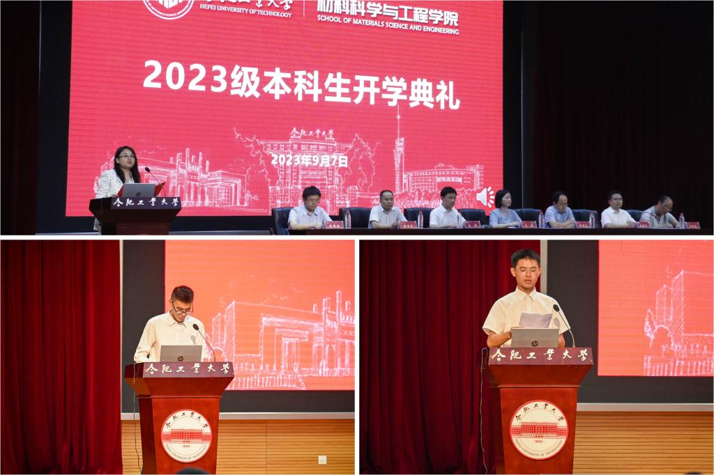 典礼上,金属材料工程系黄俊作为教师代表发言,从自身角度出发,感同身受的鼓励同学们迎接新环境,开启新征程,叮嘱同学们在大学期间要树立正确的思想道德品质;尽快转变学习方式,提升自身综合素质;牢固树立专业思想,培养专业学习志趣;以坚忍不拔,勤学善思的斗志迎接大学的新挑战。国家奖学金获得者、材料物理2021级1班闫鑫鹏从自身成长经验出发,建议同学们在大一阶段夯实专业基础、把握好大学中科技创新与社会实践之间的关系、在不长的四年里,好好享受大学的美好时光,争做向上向善的新时代中国青年。材料成型及控制工程2023级2班李昱辉同学代表全体2023级本科新生表态,他表示将不改初心,矢志奋斗,不忘来路。谨遵师长教诲,严守学校制度,注重学识积累,养文明之精神,修野蛮之体魄,积极参与校园及社会活动,积淀自身社会本领,投身志愿服务事业,开阔认知眼界,掌握基本行为技能,尊重师长,尊重知识,与人为睦,在合工大校园遇见更好的自己,追寻更高的目标,续写91偷拍