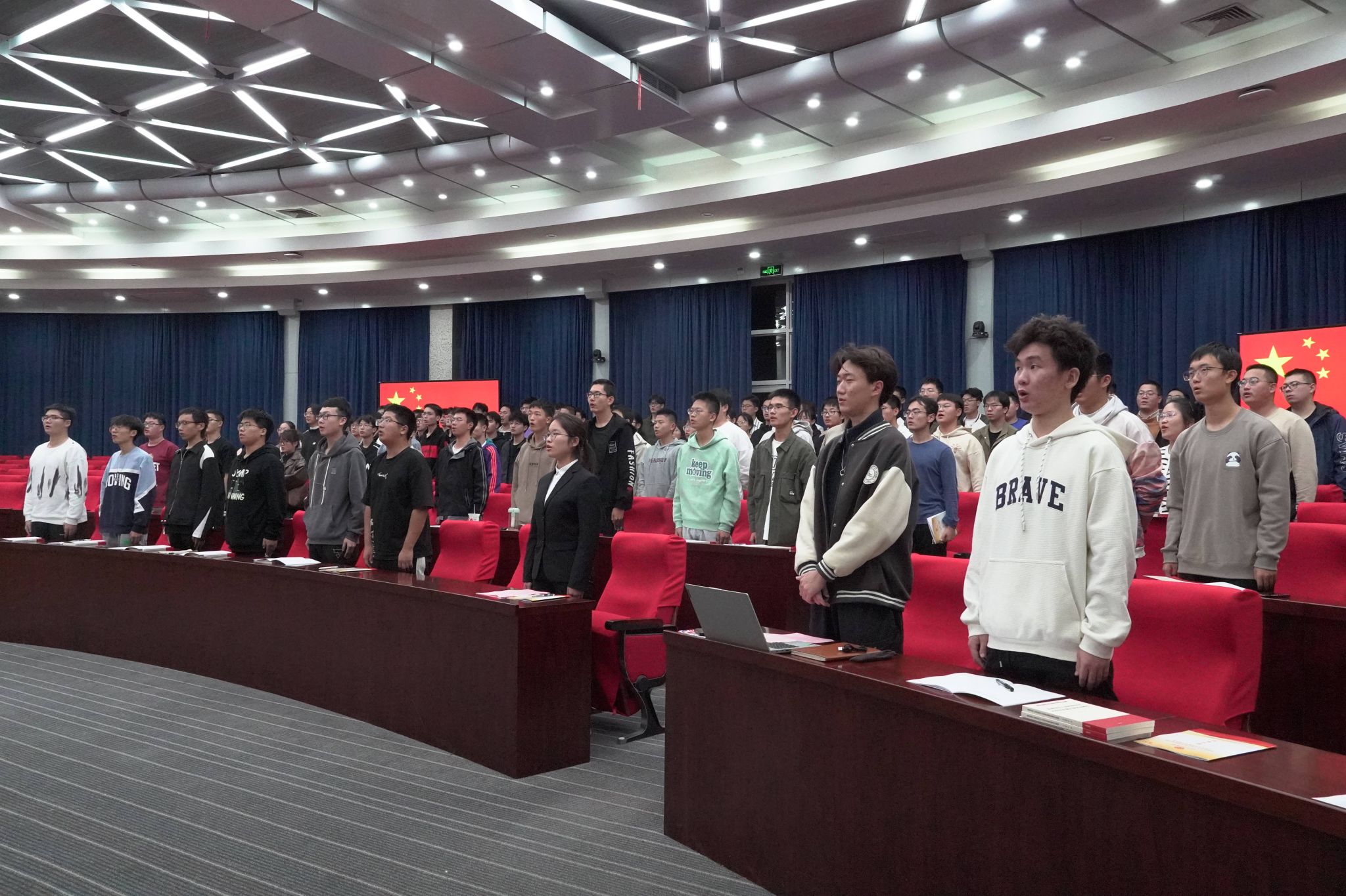 分党校第70期大学生入党积极分子培训班开班仪式暨党课第一讲在屯溪路校区学术会议中心一楼报告厅顺利举行。学院党委、分党校相关负责人、班主任及123名学员在会场参加了仪式。