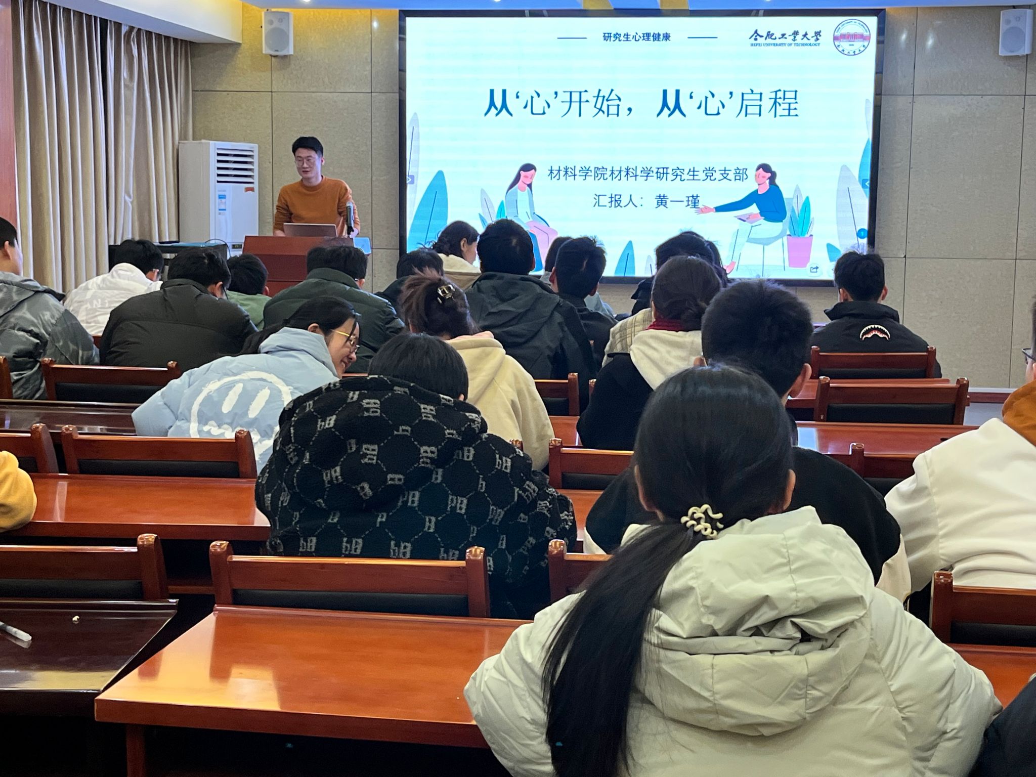 12月2日,材料学研究生党支部开展了“从‘心’开始,从‘心’启程”主题党日活动。活动中,支部党员黄一瑾同志讲解了研究生的心理健康现状并给出缓解压力的方法,他建议大家要以一颗平常心面对压力,尝试转换思维等方式缓解压力。接着,支部书记李梦冉对大家最近的生活进行询问并给予关心,并进行了缓解心理压力相关的小游戏。活动中,与会党员积极参与,大家纷纷表示自己今后能够以更加积极的心态面对压力。此次活动对于帮助研究生党员树立乐观向上的心态,积极应对今后的学习、生活、工作具有积极的意义。