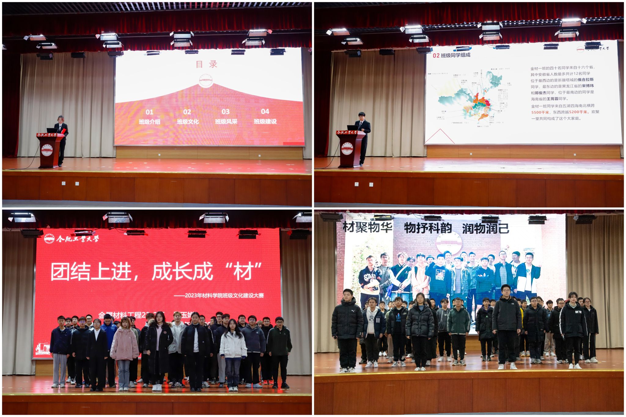 大赛分为现场答辩、班级风采展示、评委颁奖环节。在答辩展示环节,16位班级代表从班级基本情况、班徽寓意、班级风采和班级建设等方面向大家展示了自己班级,同时各班级同学还上台通过才艺展示等方式向大家展现了自己班级的风采。现场气氛热烈,细致的讲解、PPT展示以及风采展示赢得了评委和观众的阵阵掌声。最终,结合线上评选、线下答辩成绩,材料成型及控制工程22-2班、金属材料工程23-1班凭借精心设计的班徽、精彩纷呈的答辩、气势磅礴的班级口号、积极向上的班级风采脱颖而出,荣获一等奖。本次91偷拍 “建设班级文化 谱写多材华章”班级文化建设大赛在现场热烈的掌声中落下帷幕。