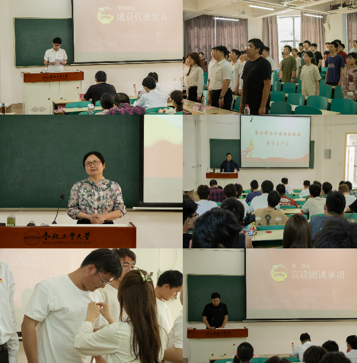 2022级辅导员唐锴为学员代表佩戴团徽。梁家伟同学作为学员代表发言并向全体同学发起倡议,“希望全体团校学员能够严于律己、做好表率、树立良好的团校学员形象,把握时代脉搏,勇当时代先锋”。