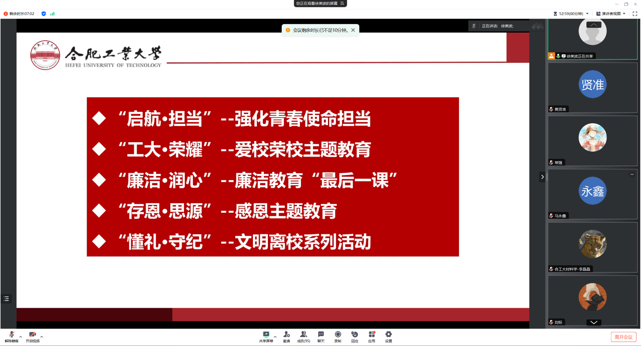 学院召开“青春启新程,奋楫勇前行”主题毕业生年级大会,研究生辅导员和全体2024届毕业生线上参加。