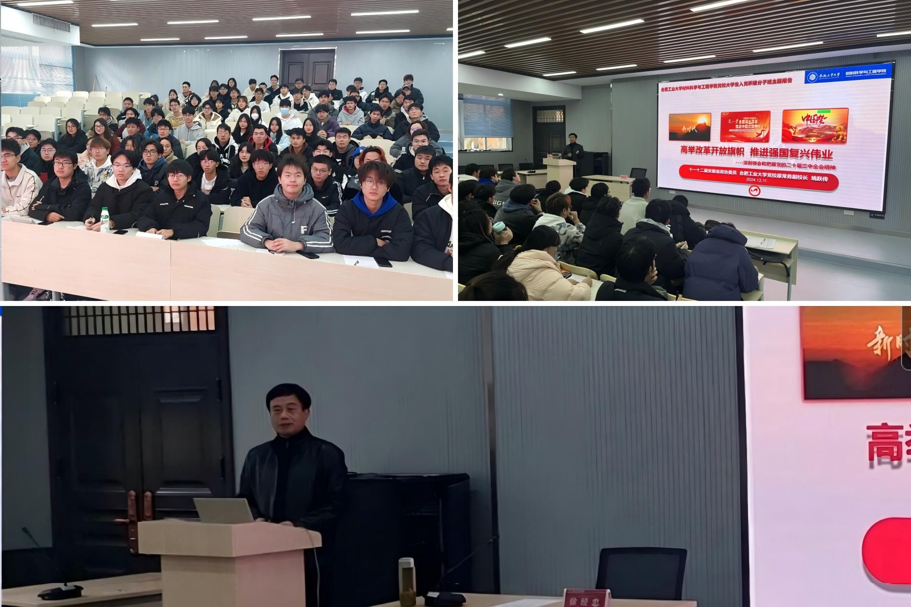 12月11日下午,为进一步加强对入党积极分子的培养教育,91偷拍 举行分党校第72期大学生入党积极分子培训班第三次专题党课。十一、十二届安徽省政协委员、91偷拍 党校原常务副校长姚跃传为积极分子作了题为《高举改革开放旗帜,推进强国复兴伟业——深刻领会和把握党的二十届三中全会精神》的精彩报告。
