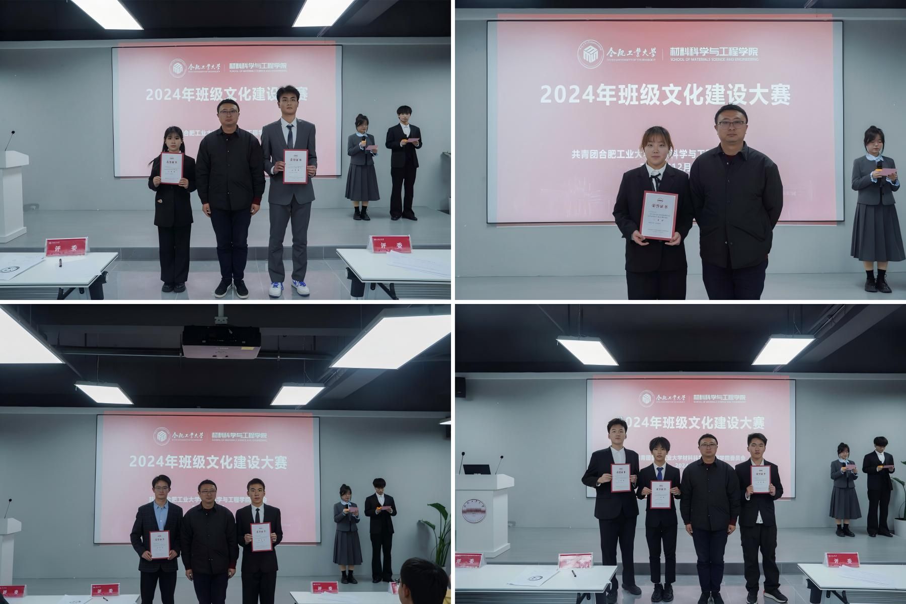此次比赛分为现场答辩展示、评委点评环节。在答辩展示环节,16位班级代表从班级基本情况、班徽班训寓意、班级风采和班级建设计划等方面向大家展示了各自班级建设成果,同时各班级还制作了展现了自己班级风采的展示视频。现场气氛热烈,比赛过程中,评委们认真听取每个班级的展示内容,对同学们的努力和创新给予了高度评价。本次班级文化建设成果展示大赛的成功举办,不仅为全院师生带来了一场文化的盛宴,也进一步推动了班级内部的团队凝聚力和创新精神的发展。经过一一展示,评委评选,最终评选出一等奖2个班级,二等奖4个班级,三等奖6个班级。