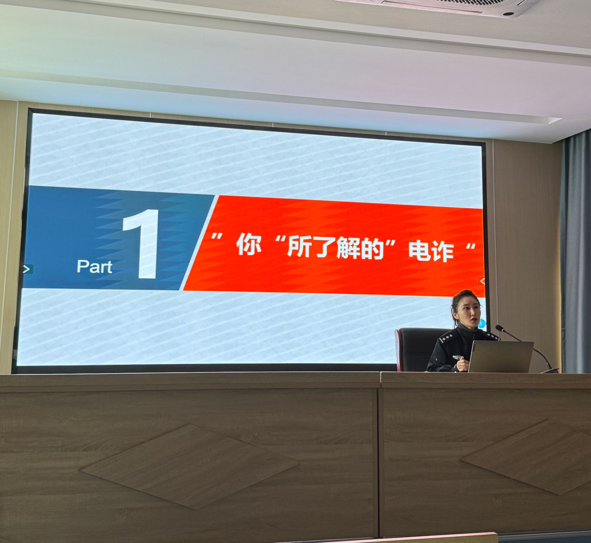 耿警长围绕“了解电信诈骗常见类型”、“剖析电信诈骗常见套路”、“防范电信诈骗的措施”三方面进行宣讲。她介绍了高校师生群体常见的受骗类型,包含“网络兼职刷单刷信誉诈骗”、“网络贷款诈骗”、“投资理财类诈骗”、“冒充购物快递客服退款类诈骗”、“QQ、微信冒充熟人、教师、领导等诈骗”、“游戏装备、账号交易类诈骗”、“冒充公检法、医保局类诈骗”、“交友诈骗”等八类。并结合具体案例,详细讲解了诈骗分子的作案手法和心理战术。针对高校师生易受骗的情况,耿警长提出了多项防范措施,谨记“三不一多”原则,即未知链接不点击、陌生来电不轻信、个人信息不透露、转账汇款多核实。