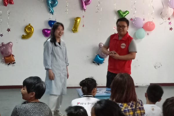 到达康复中心后,志愿者们在工作人员的指导下,一起布置了活动场地,四处悬挂的气球、彩带,给孩子们营造了一个轻松、欢乐的氛围。陆续到场的孩子们看到五彩缤纷的现场显得无比的开心,他们在家长的陪同下依次落座。活动开始,志愿者们为孩子们献上了精心准备的歌曲《感恩的心》,孩子们在家长的带领下也自发的唱了起来,温馨的现场氛围让与会的同学纷纷感动落泪。随后,志愿者们各显才艺,有的表演魔术,有的跳舞、有的说唱等等,丰富的节目表演使得现场的孩子们捧腹大笑。孩子们灿烂的笑容和家长们络绎不约的掌声使得志愿者们感觉到了无比的快乐。
