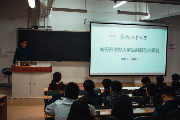 大学生创新创业项目优秀代表王美慧子和赵军一两位同学,现场分享了申报创新创业项目的经验与体会,并与同学们开展了面对面的答疑解惑。