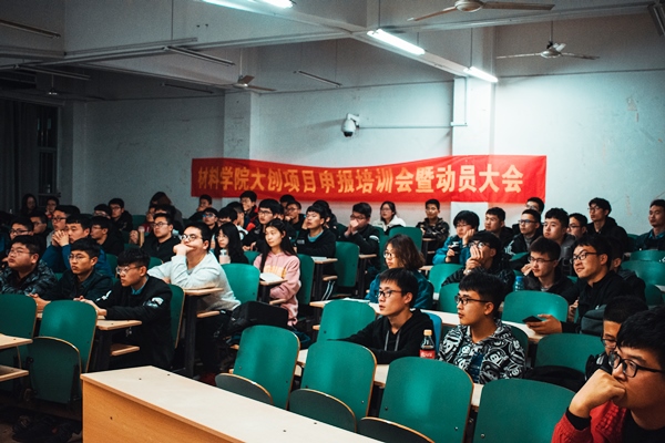 于翡翠湖校区举办大学生创新创业项目动员会暨经验交流会。讲座邀请学院材料成型及控制工程专业王成勇副教授作动员报告,2015级优秀学生代表王美慧子和赵军一做经验分享。
