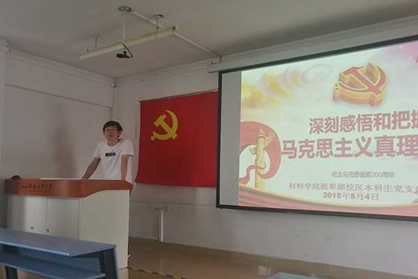 党员班全体学员于翠8教309教室组织观看了习近平总书记在马克思诞辰200周年大会上的重要讲话并学习了习近平总书记在五四青年节来临之际在北京大学师生坐谈话会上的重要讲话文件和精神。