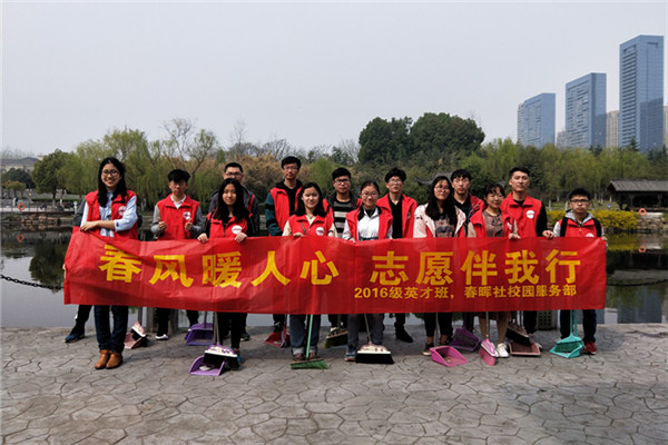 2016级英才班团支部前往翡翠公园开展“春风暖人心,志愿伴我行”志愿清扫活动。