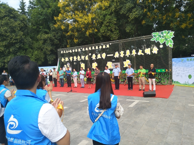上午10时,合肥市包河区文明办宣读《包河区“黄丝带•共享单车文明行”志愿服务活动行动方案》宣布活动正式开始。来自合工大的志愿者代表宣读志愿服务活动倡议书,希望大家文明使用共享单车,创造一个文明有序的公共环境。