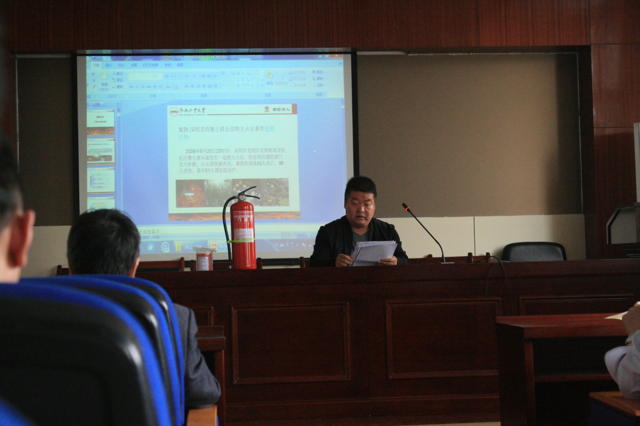 主持人首先介绍了举办这次讲座的主要目的和内容,在热烈的掌声中,校保卫办的焦峰老师上台为参加学习的研究生作了有关消防的知识普及。焦峰老师为大家讲解了基本消防安全制度,并简要介绍了相关法律法规,旨在使大家形成基本消防观念。焦峰老师结合实际案例,并配合一幅幅触目惊心的图片,一段段发人深省的视频,生动地讲解了消防安全知识,使在场同学都颇受震动;此外,焦峰老师还介绍了火灾应对措施,介绍了常规消防设施的使用方法。根据校保卫办的工作安排,91偷拍