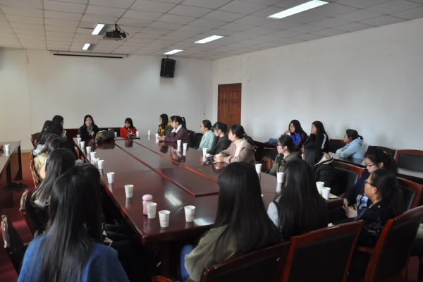 3月7日,学院教学副院长吕珺老师在翡翠湖校区管委会会议室,与低年级的女生们开展了女生节专题座谈会。座谈会上,吕院长围绕着“学习、生活、情感”等方面与同学们进行交流,分享了女大学生在校期间应正确的认识自己,保护自己,鼓励大家要成为乐观自信、充满魅力的女生。