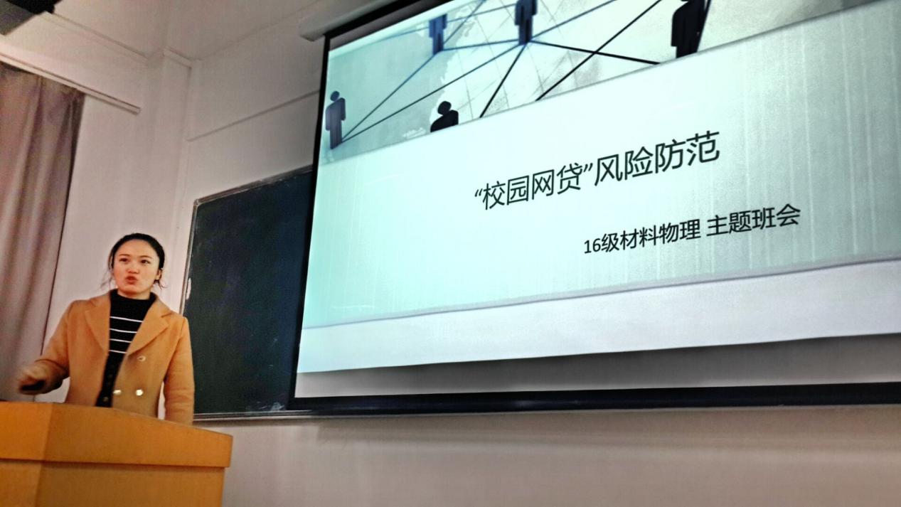 2016级材料物理专业于12月9日晚在翠八教303召开了“‘校园网贷’风险防范”主题班会。此次班会由16级辅导员左旭主持。