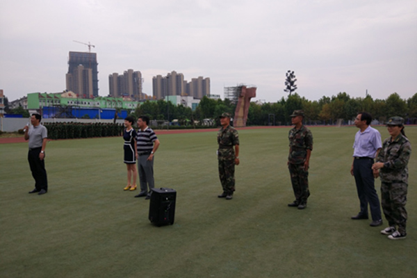 2016级新生军事训练场地东操场,看望参与训练的教官和新生。