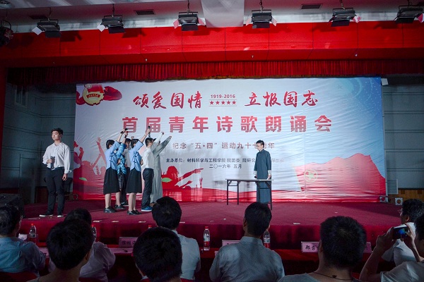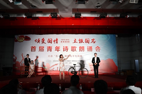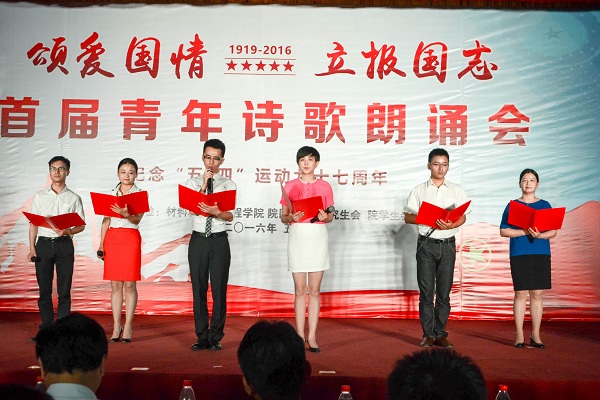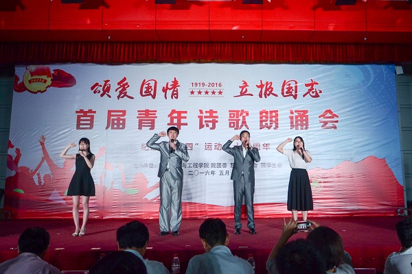 团委主办的“颂爱国情、立报国志”首届青年诗歌朗诵会在东风报告厅举行。