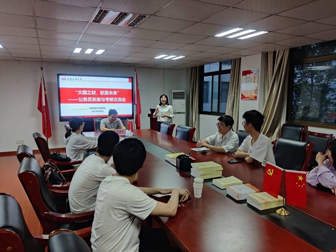 于5月8日晚在屯溪路校区材料楼党员之家举办“大国之材,职面未来”公务员选拔与发展交流会,交流会邀请2015年考取安徽省选调生的王戴君同志做主讲。学院有意向报考公务员考试的本科生参与了活动。