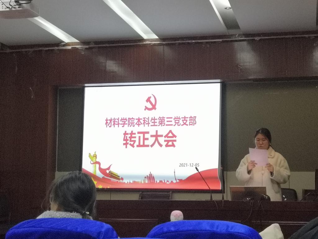 在材料楼601报告厅开展“中国特色社会主义进入新时代”党史主题集中学习活动暨预备党员转正大会。