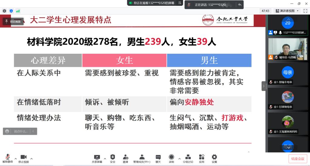 通过腾讯会议在开展了“爱的教育”亲子沟通专题讲座,学院全体2020级学生家长在“云端”参加讲座。