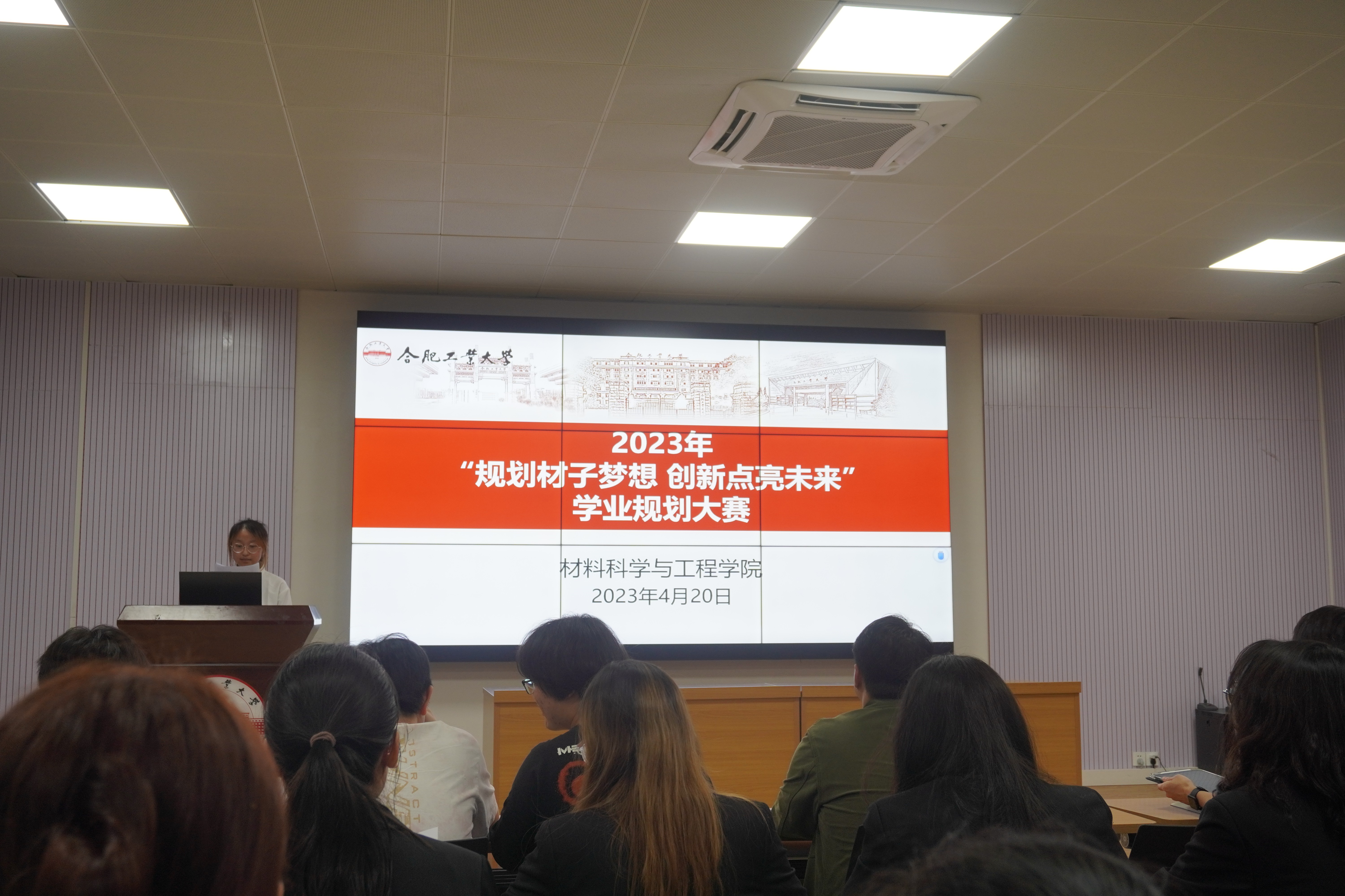 于4月20日晚在翡翠湖校区综合楼多功能报告厅成功举办了“规划材子梦想,创新点亮未来”学业规划大赛,学院辅导员,全体参赛选手参加。