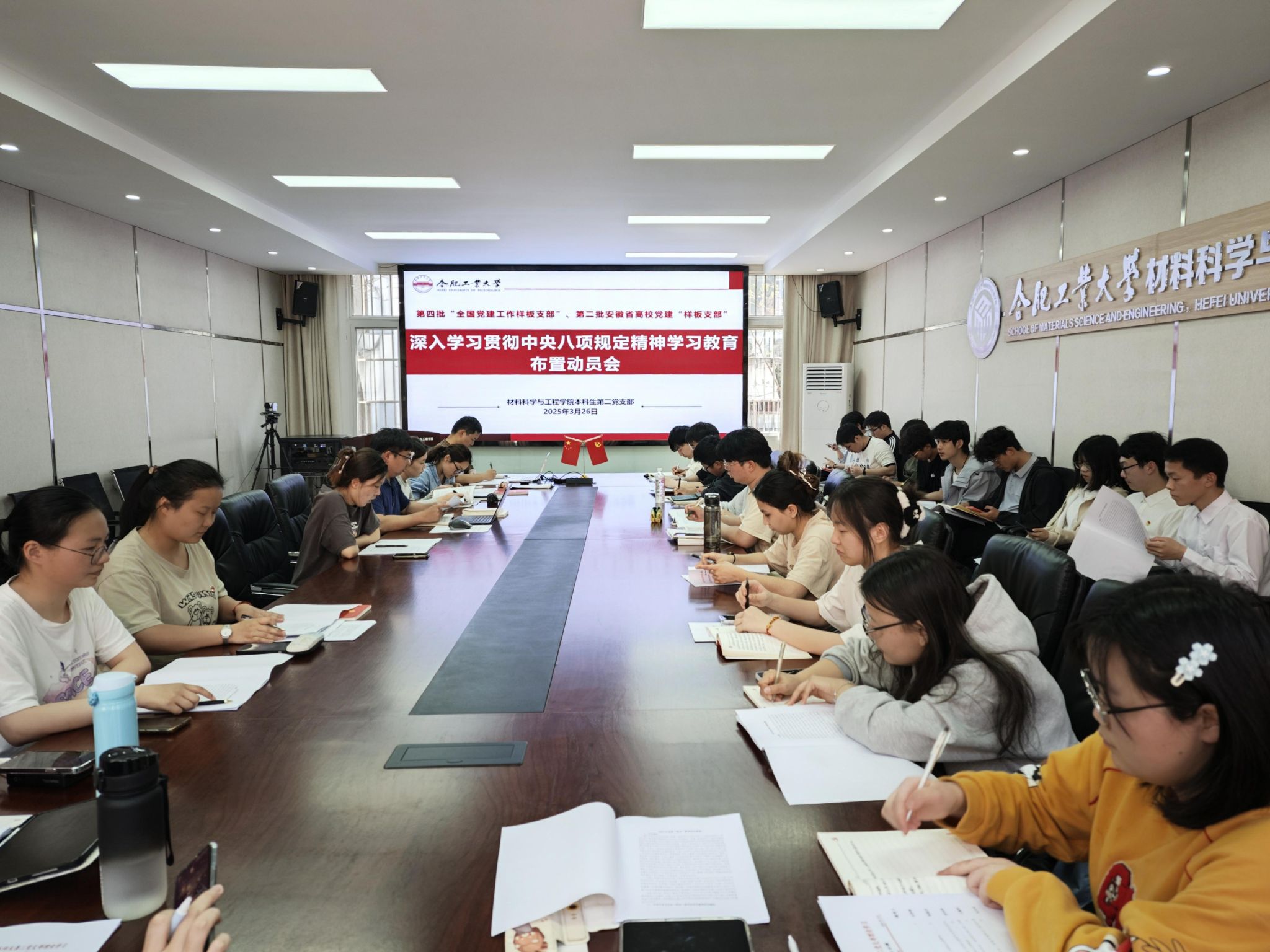 本科生第二党支部在屯溪路校区小红楼210召开深入学习中央八项规定精神学习教育布置动员会。会议由支部书记马贤峰主持,支部全体党员同志参与本次会议。