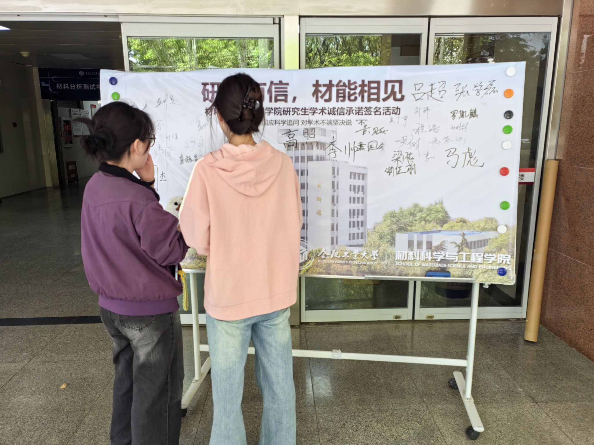 于4月25日上午,在材料楼举办“研而有信,材能相见”学术诚信主题教育活动,活动通过宣誓签名、案例警示、互动问答等形式,吸引了80余名研究生参与。