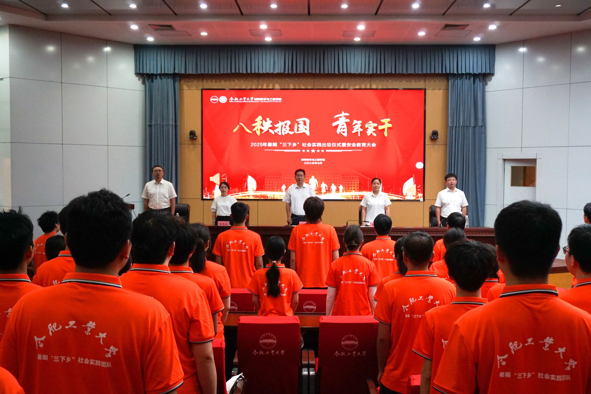 在屯溪路校区学术会议中心一楼大报告厅隆重召开2025年暑期‘三下乡’社会实践出征仪式暨安全教育大会。学院相关负责人、各实践团队指导老师和实践队员共170余人参加了本次大会。