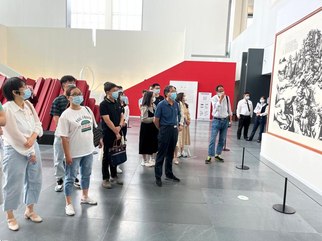 活动现场,师生党员在讲解员的带领下先后参观了“安徽省重大历史题材美术作品展”、“马克·夏加尔物色之梦数字艺术展”、“韩美林艺术展”,深刻学习以国画、油画、版画等艺术形式记录和反映安徽波澜壮阔的历史,通过多维度感官体验空间感受画家的作品,充分展现了中国精神、时代气象、安徽风格。师生党员深刻感受到徽州文化和民族瑰宝的文化魅力,在浓厚的艺术文化氛围中上了一堂深刻新颖的艺术修养党课。