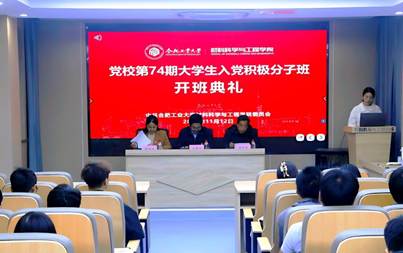 分党校第74期大学生入党积极分子培训班开班仪式暨主题党课于材料楼601报告厅顺利举行。学院党委、分党校相关负责人出席,全体学员参加仪式。