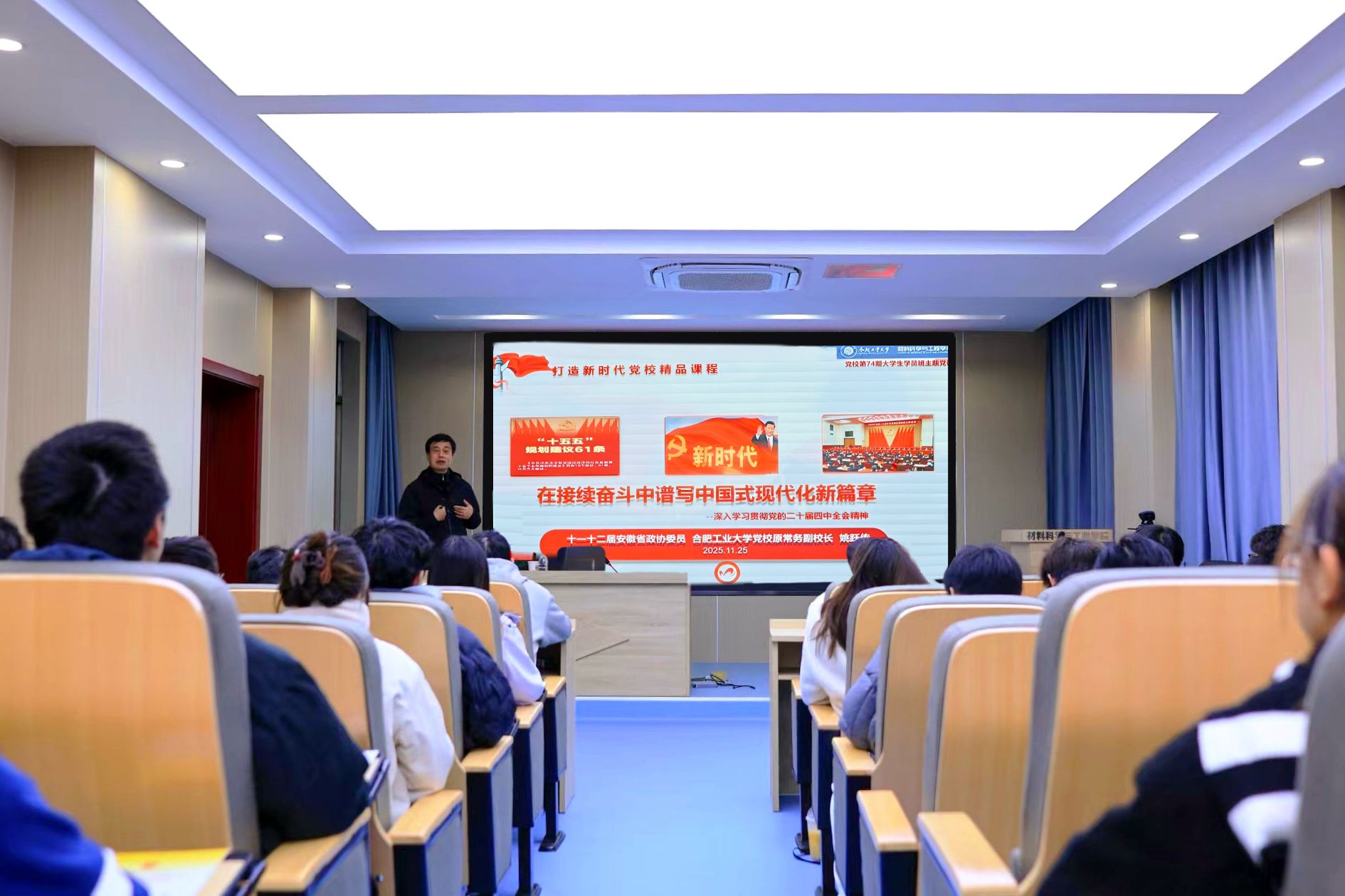 党校原常务副校长姚跃传为74期大学生入党积极分子作题为《在接续奋斗中谱写中国式现代化新篇章——深入学习贯彻党的二十届四中全会精神》的报告。
